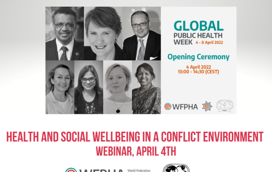 GLOBAL PUBLIC HEALTH WEEK (Opening Ceremony) 04 April 2022 | 13:00 (CEST) Save Your Spot: https://www.eventbrite.ca/e/health-and-social-wellbeing-in-a-conflicted-environment-tickets-297939704677 Global public health leaders, including Dr Tedros Adhanom Ghebreyesus, Director-General of the World Health Organization (WHO), and Rt. Hon. Helen Clark, Former Prime Minister...