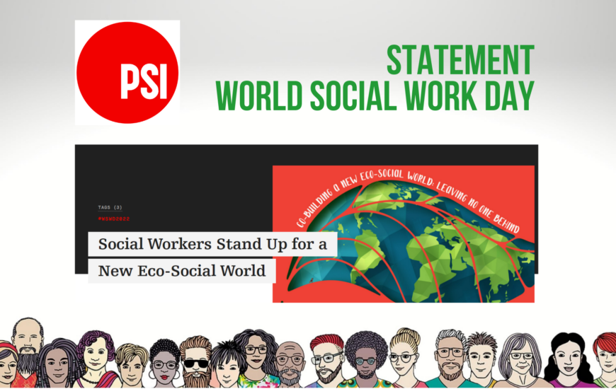 Social Workers Stand Up for a New Eco-Social World Today, the Public Services International. salutes and joins social workers worldwide to celebrate World Social Work Day 2022. The third Tuesday in March is marked every year as World Social Work...